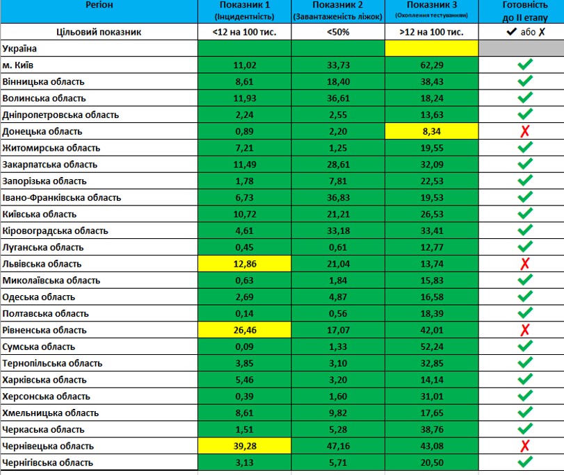 По состоянию на 29 мая 4 региона Украины не отвечают всем необходимым критериям для ослабления противоэпидемических мероприятий.