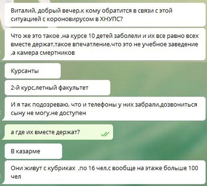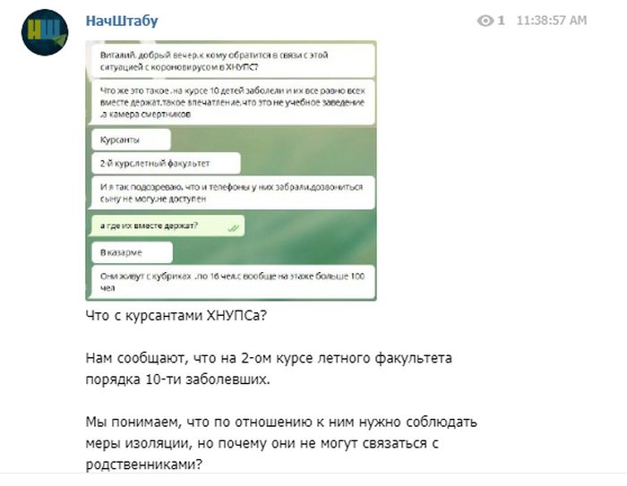 Между тем, паблик НачШтабу сообщает о том, что заболевшие - курсанты Харьковского национального университета воздушных сил.