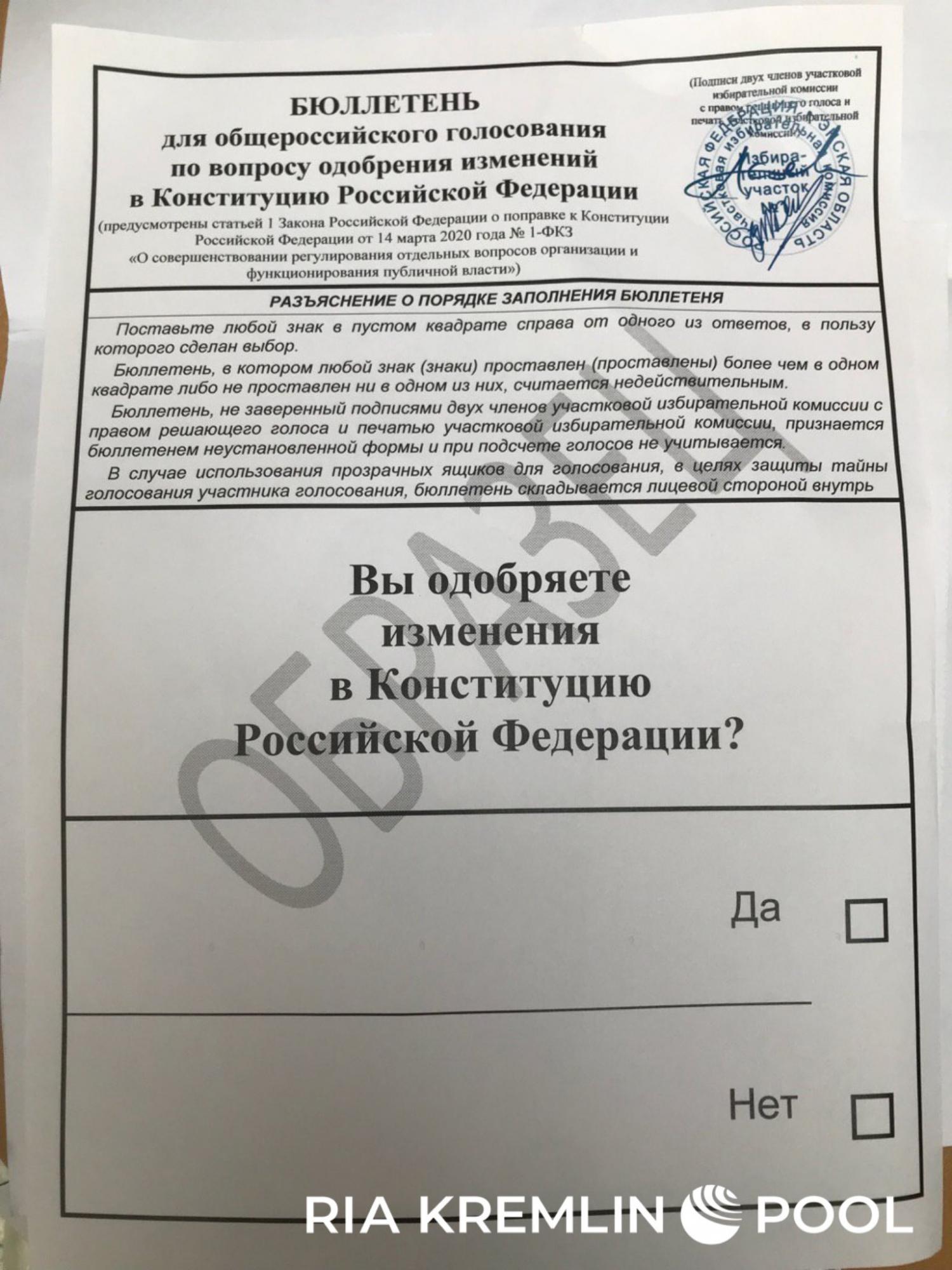 В интернете появилась копия бюллетеня, который будет использоваться на голосовании по поправкам в Конституцию России 1 июля, пишет "Коммерсант".