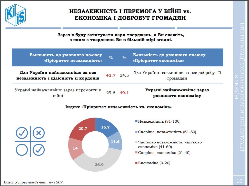 На первое место украинцы поставили необходимость развивать экономику - 49,1%