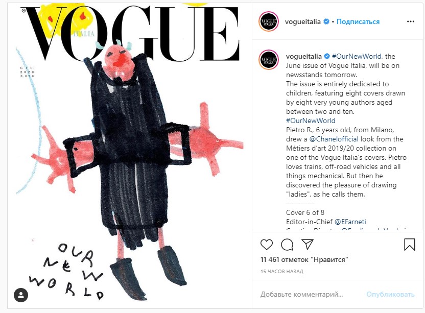Июньский выпуск итальянской версии журнала Vogue целиком посвящен детям. Об этом сообщается на странице издания в Instagram.