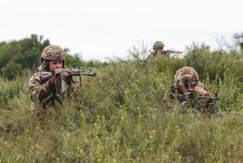 "Ротно-тактическая группа "Азов" в составе общего военного резерва должна вытеснить противника, который вклинился и занял рубеж на взводно-опорном пункте одного из батальонов 10-й горно-штурмовой бригады, и уничтожить его огнем. Итак, ротно-тактическая группа направилась в район ожидания и согласно сигналам и командам управления выдвинулась на огневой рубеж, уничтожил противника и перешла в контрнаступление", - очертил задачи подразделения командир "Азова" "Редис".