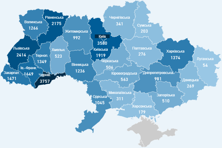За сутки больше всего новых случаев заболевания коронавирусом зафиксировано во Львовской области, а также в Киеве и Киевской области.