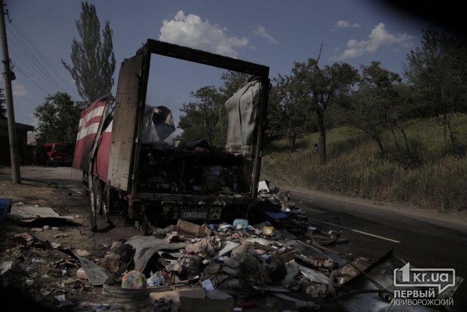 Сам грузовой автомобиль цел, а прицеп фуры с посылками сгорел.
