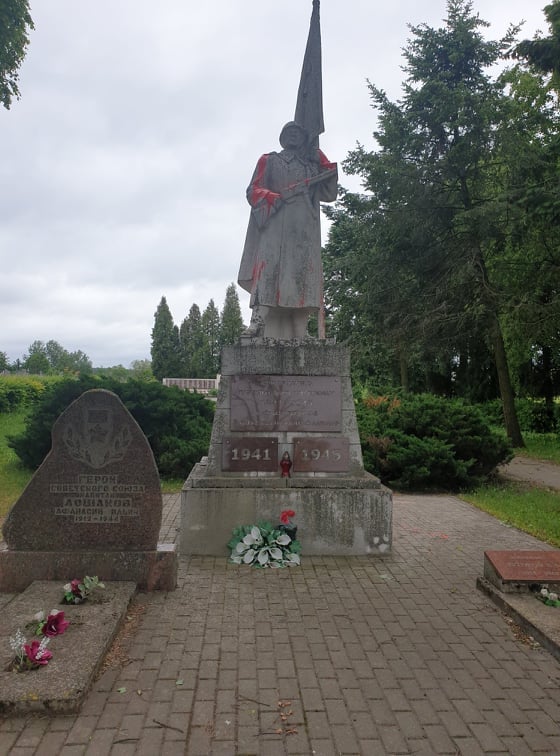Памятник советскому солдату, герою СССР, участнику Великой Отечественной войны Афанасию Лошакову залили красной краской в Кедайняйском районе Литвы, сообщает пресс-служба департамента полиции республики.