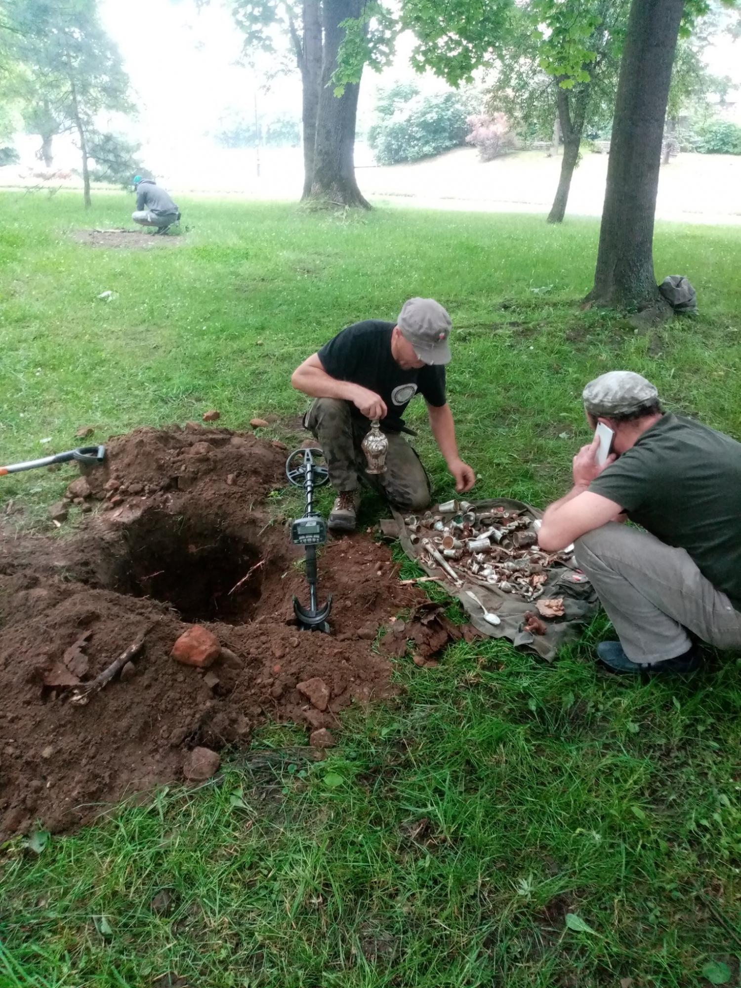 Археологи осматривали участок возле башни и при помощи металлоискателя обнаружили ржавый сундук. Сундук оказался почти разрушен, в плохом состоянии были и документы, лежавшие сверху, зато остальное содержимое сундука сохранилось почти идеально. Этим содержимым были серебряные изделия: посуда, столовые приборы, канделябры — всего 103 предмета. Изготовлены они были на рубеже XIX–XX веков, а стиль указывает на еврейское церемониальное искусство. Археолог Бартломей Урбанский (Bartłomiej Urbański) рассказывает: «Это иудаика, вероятно, XIX–XX века, связанная с иудейским ритуалом. Вероятно, предметы были закопаны во время Второй мировой войны. Возможно, они связаны со зданиями, которые раньше были в этой части города. Или были украдены немцами, которые не смогли их забрать».