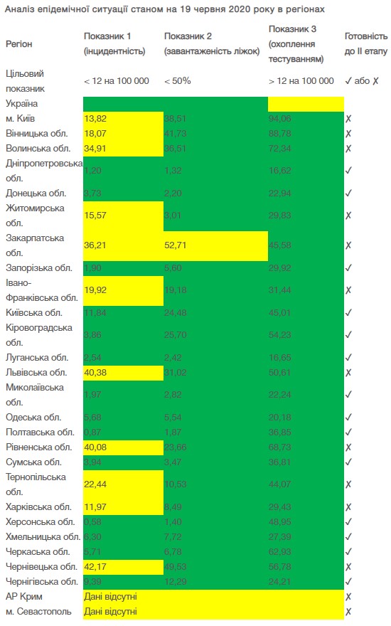 В Украине к переходу к ослаблению карантина не готовы Киев и еще 10 областей. В данных регионах превышен показатель инцидентности заболеваемостью коронавирусом, а Закарпатская область не проходит сразу по двум пунктам.