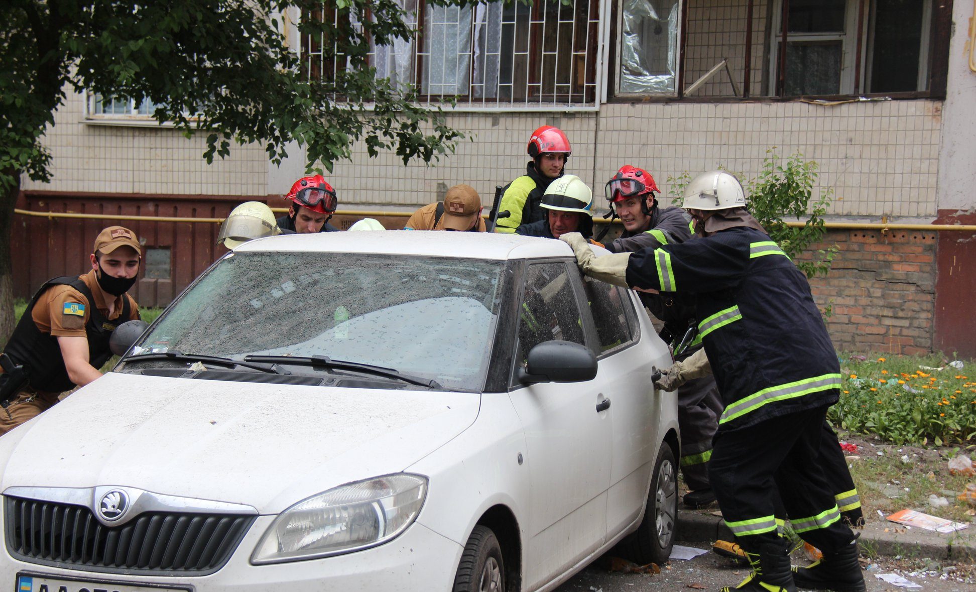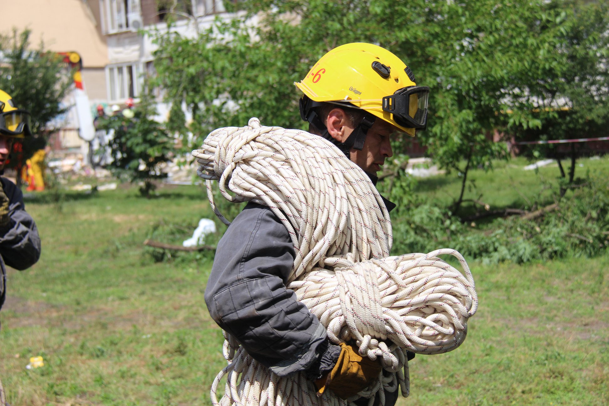 ГСЧС распространила снимки работы спасателей на месте разрушения части жилого дома по ул. Соломии Крушельницкой, 1/5, которое произошло в Киеве в результате взрыва 21 июня.