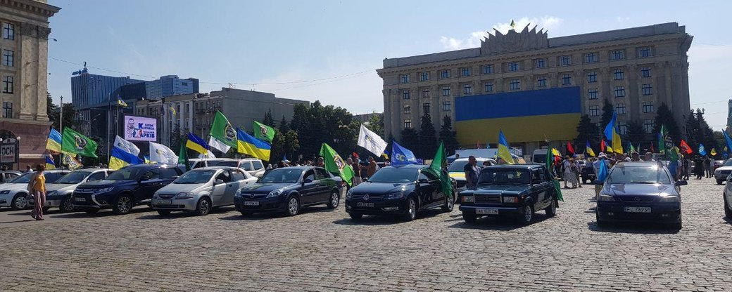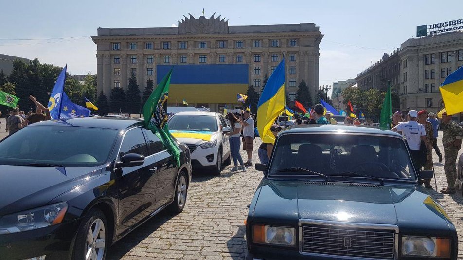 C площади Свободы в Харькове стартовал автопробег, посвященный Дню Конституции Украины.