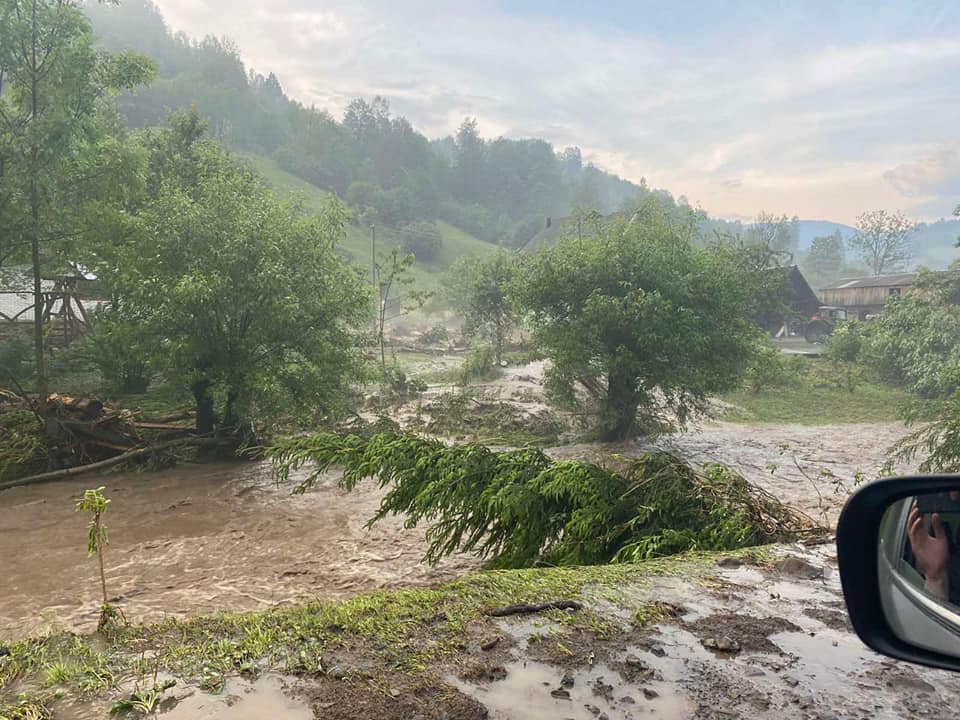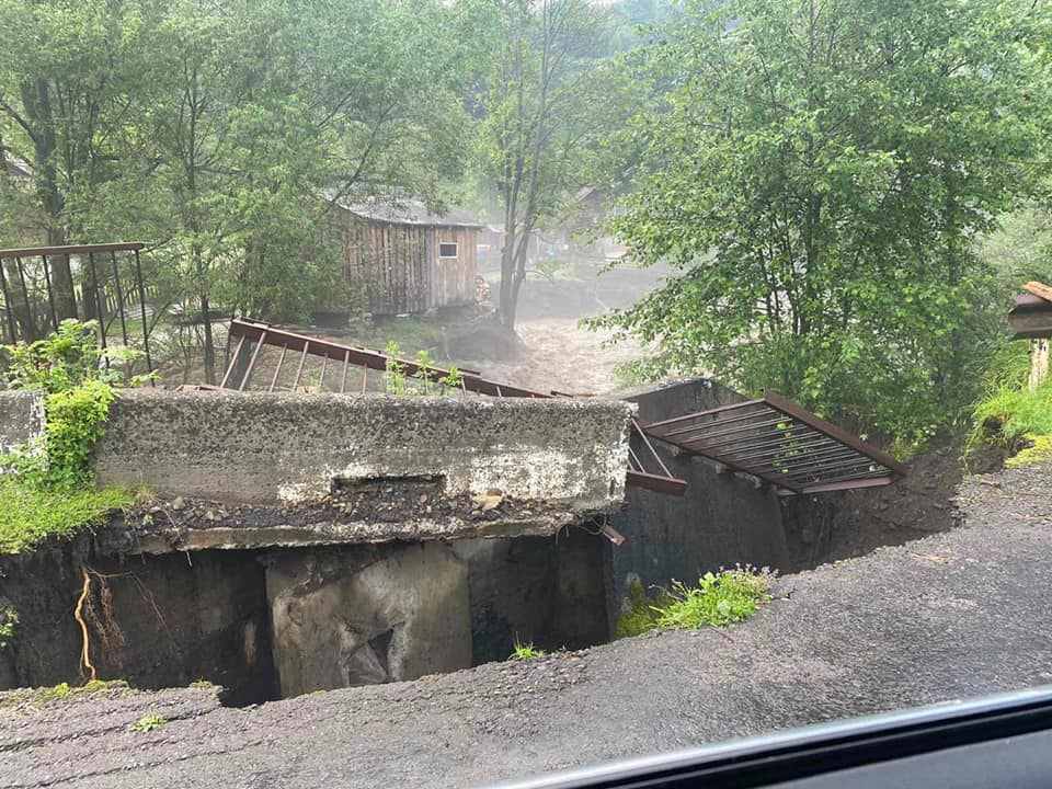 Міжгірський район Торунська сільрада – потічок перетворився на повноводну ріку і зніс частину дороги та декілька містків.