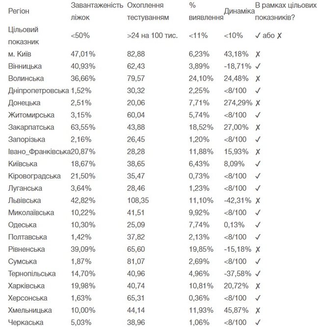 По состоянию на 2 июля Киев и 10 областей Украины не отвечают всем необходимым критериям для ослабления противоэпидемических мер.
