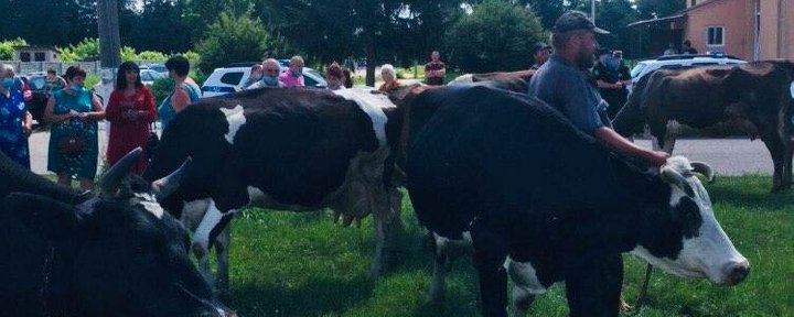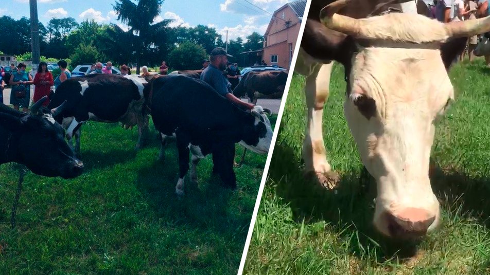 Жители села Циркуны в Харьковском районе вышли на акцию против передачи земель для пастбищ в частную собственность. С собой на акцию привели с десяток коров.