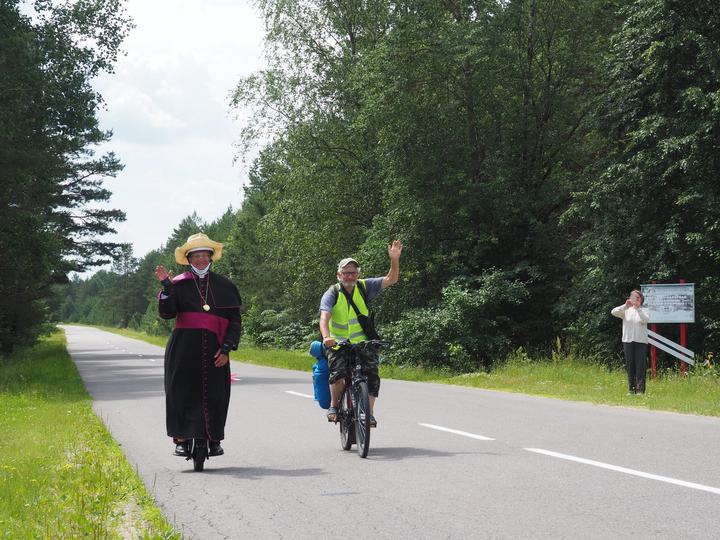 Путь следования в этом году подстроили под электротранспорт: священник ехал по трассе, обычно же дорога пилигримки проходит по лесам и полям. Несмотря на отмену паломничеств, в пути священник встретил людей, которые преодолевали привычный путь в одиночку: кто-то ехал на велосипеде, а кто-то шел пешком с рюкзаком. Многие проводили ксендза-каноника несколько километров на своем транспорте.