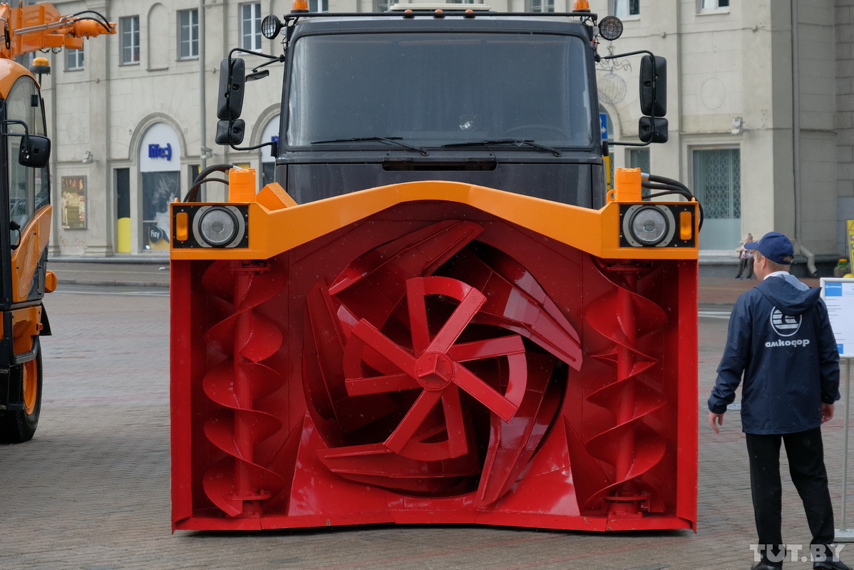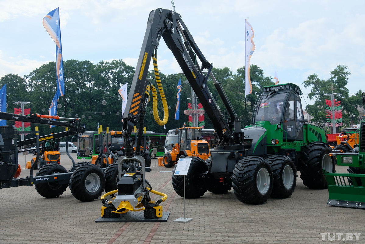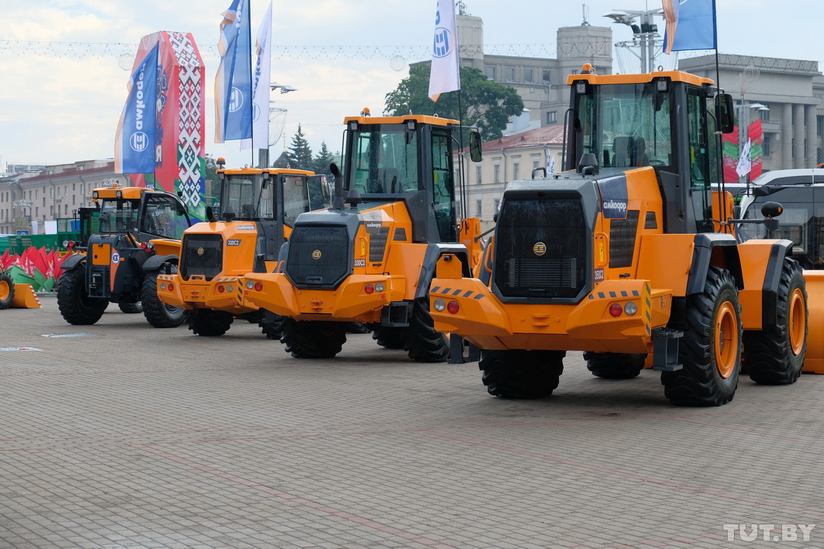 За несколько часов до открытия выставка белорусской техники была похожа на авторынок. Представители заводов наводили лоск на автомобили — полировали шины, натирали тракторам крашеные бока и даже рисовали на покрышках.