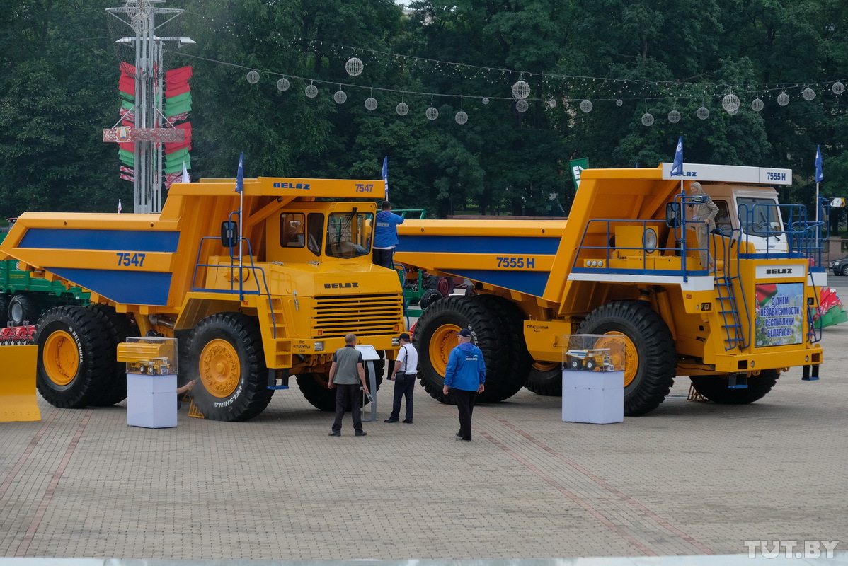 В преддверии Дня независимости белорусские автогиганты привезли свои достижения на Октябрьскую площадь Минска. Большую часть экспозиции заняла грузовая и спецтехника белорусского производства, пишет tut.by.