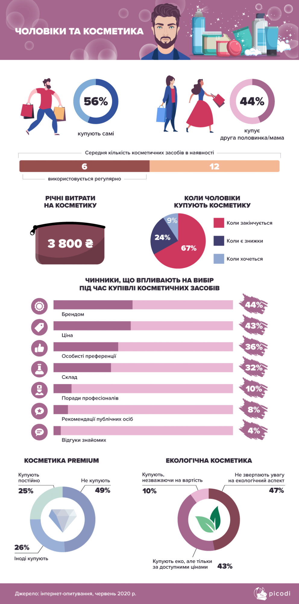- В отличие от украинок, мужчины обычно покупают косметику после того, как она закончится (67%). Только 24% покупают косметические средства по акции, а 9% — когда хотят.