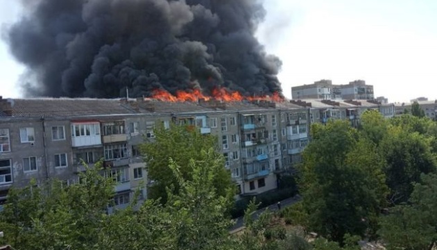 "5 июля в 14:40 в Службу 101 Новая Каховка поступила информация о пожаре на крыши 5-этажного дома по ул. Букина. На месте происшествия работают 7 отделений пожарно-спасательных подразделений области и 25 человек личного состава", - написал он.