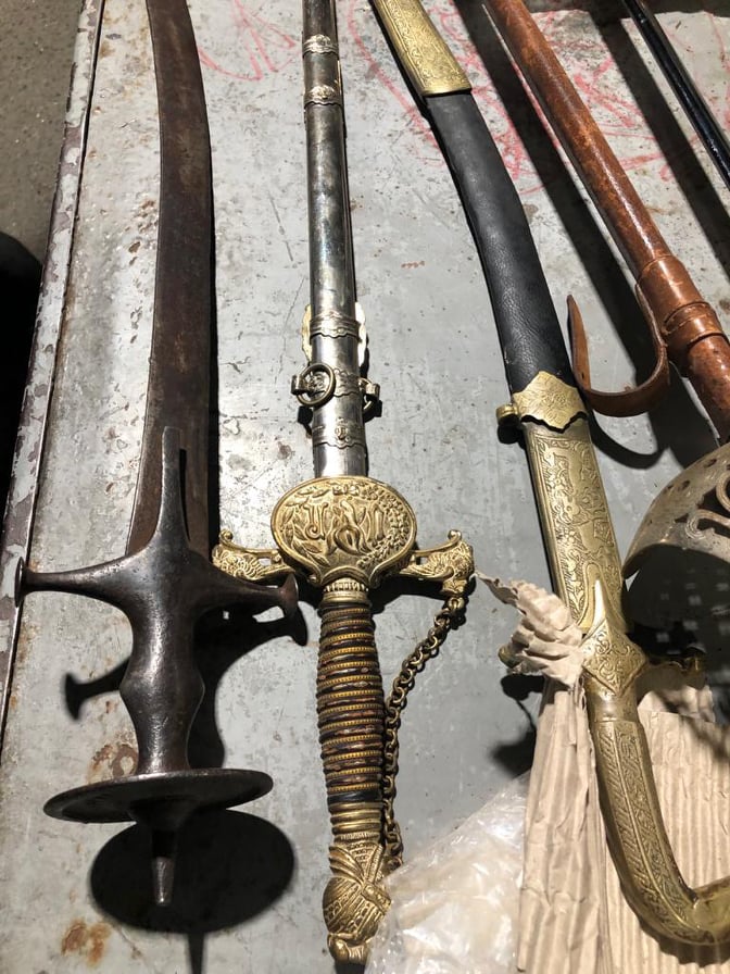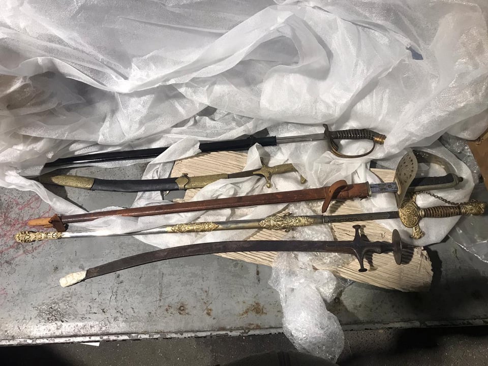 "Во время проверки багажного отсека пограничный наряд совместно с сотрудниками таможни заметил картонную коробку со старинными предметами. Было принято решение о выводе микроавтобуса из общего потока движения и проведения его углубленного осмотра. В результате проверки среди посылок из-за рубежа были обнгаружены четыре сабли и меч", - говорится в сообщении погранведомства.