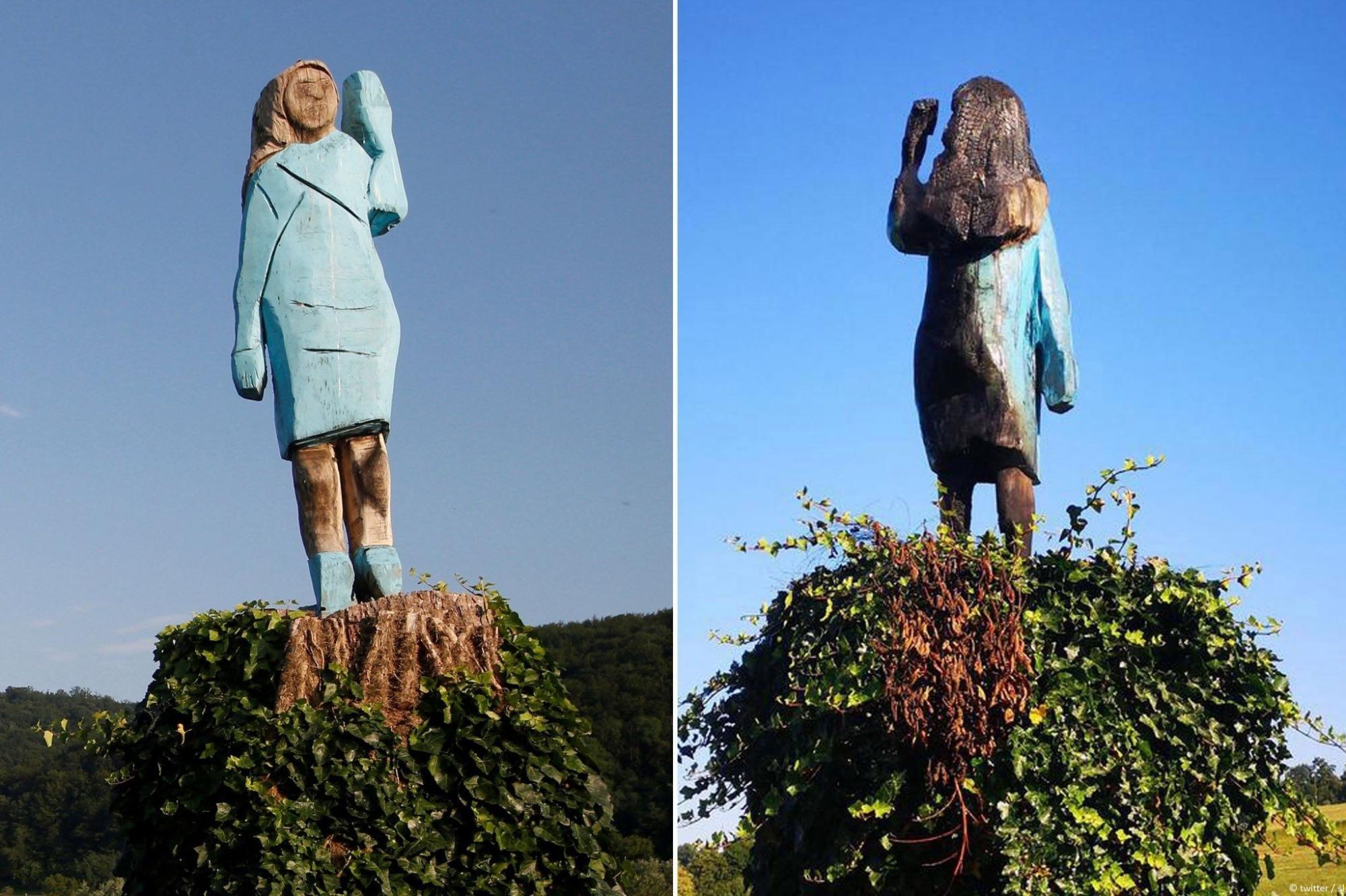 В прошлом году в Словении представили деревянную статую Меланьи Трамп в рамках выставки рядом с ее родным городом Севница. Отмечалось, что показ статуи, стоящей на берегу реки Савы, являлся сопровождающим мероприятием выставки Ta Eho ("Это Эхо") американского художника Брэда Дауни.