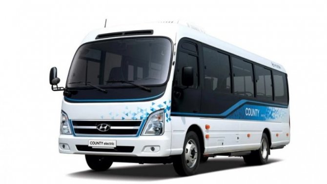Электробус Hyundai Сounty Electric относится к классу малых — его длина составляет 7 710 мм, а число посадочных мест варьируется от 15 до 33.