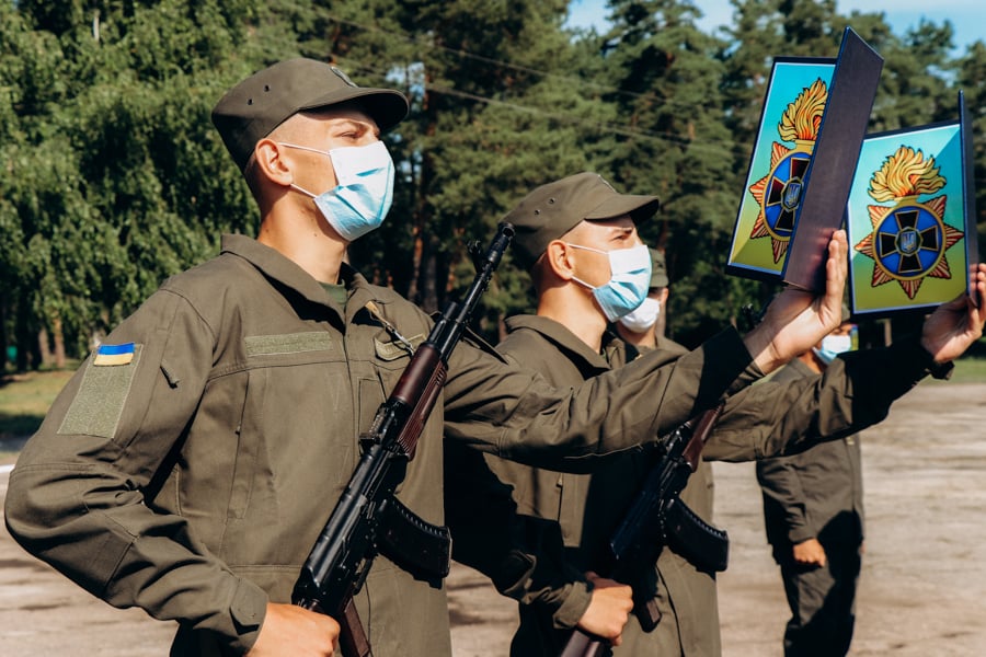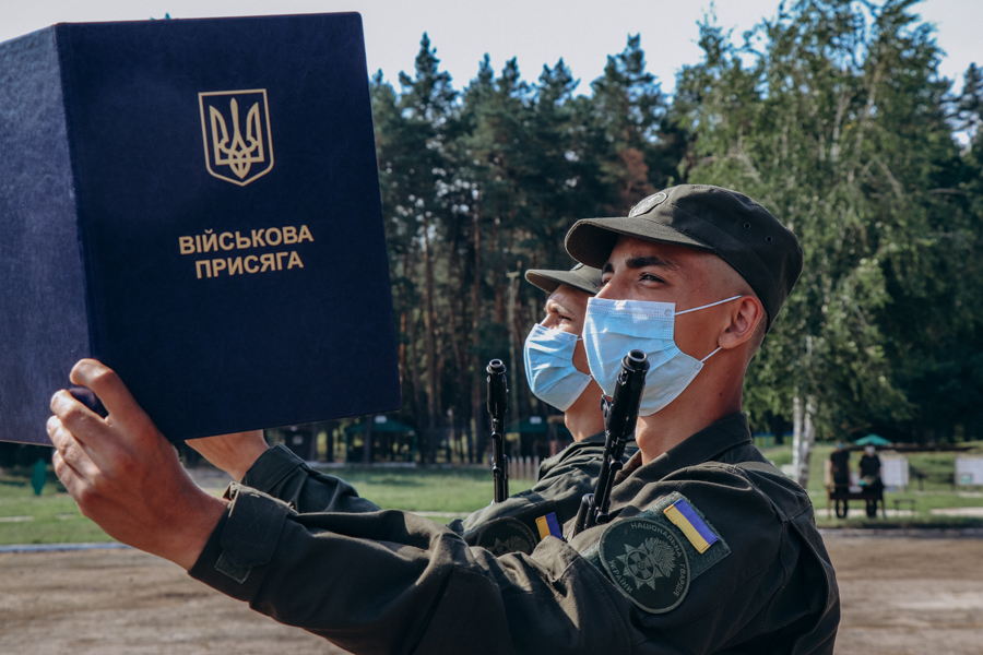 Молоде поповнення військової частини 3057 прийняло присягу дотримуючись всіх необхідних та адекватних, в умовах служби, карантинних вимог. Зокрема дотримуючись маскового режиму. На жаль, цього року не можна була допустити до участі у присязі батьків та представників ЗМІ, адже загроза поширенню COVID-19 в країні залишається вкрай актуальною. Але суть та сприйняття самого церемоніалу від того не змінилися, і це очевидно з коментарів бійців.