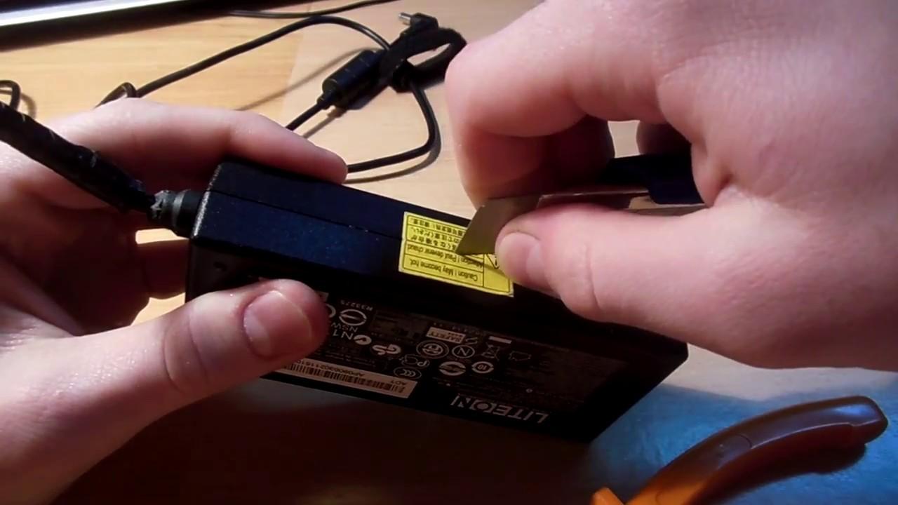 Важно запомнить, что при подключенном блоке и включенном ноутбуке напряжение блока питания должно быть таким же, как указано в маркировке.