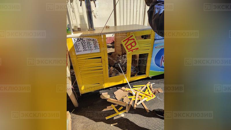 В результате случившегося обломки разбросало в радиусе 10 метров, а квас разлился по тротуару. При взрыве пострадал один человек, его госпитализировали. Медики диагностировали у него рваную рану руки.