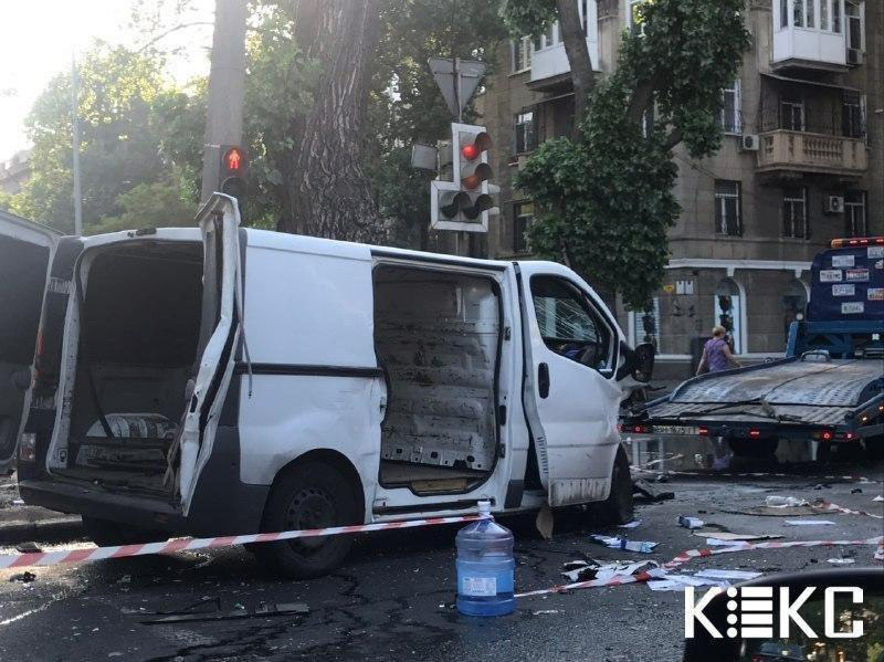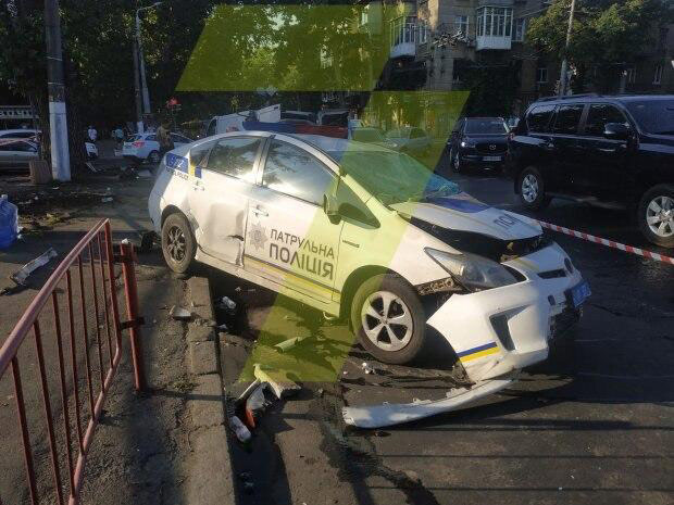 Одесские СМИ сообщили, что полицейские спешили на вызов и пересекали перекресток на большой скорости с включенными проблесковыми маячками. Водитель микроавтобуса не пропустил спецмашину.