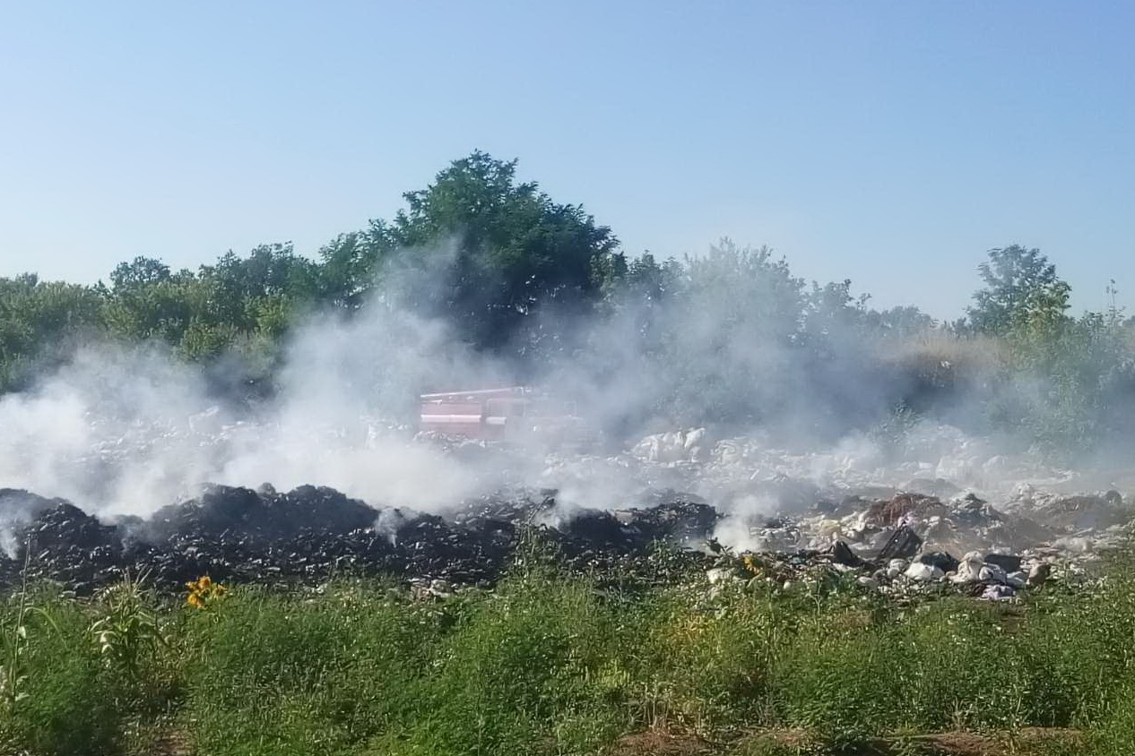 Возле города Красноград Харьковской области горит свалка, сообщение о возгорании поступило 4 августа в 20:38, на момент прибытия спасателей площадь пожара составляла около 1 га.