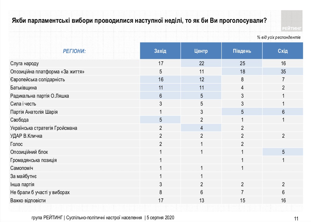 Об этом свидетельствуют результаты опроса, проведенного Социологической группой "Рейтинг" 5 августа 2020 года, информирует Цензор.НЕТ.