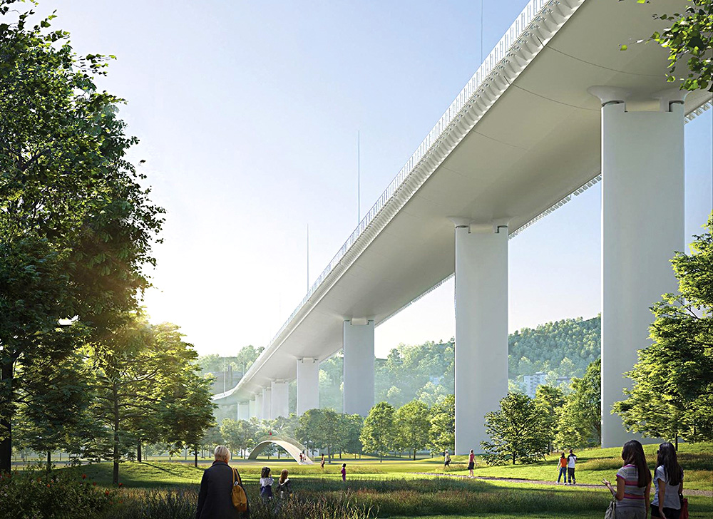 Уроженец Генуи, Пьяно (автор Центра Помпиду и Музея американского искусства Уитни в Нью-Йорке) спроектировал виадук с закругленным низом, напоминающим днище корабля — как дань уважения истории города, связанной с мореплаванием. По обеим сторонам моста будут установлены прозрачные ветрозащитные барьеры и солнечные панели для выработки электроэнергии, которая пойдет на освещение и обеспечение работы датчиков. Вдоль рельсов по бокам моста установят механизмы, которые будут постоянно мониторить конструкцию на наличие признаков эрозии, отмечает theartnewspaper.