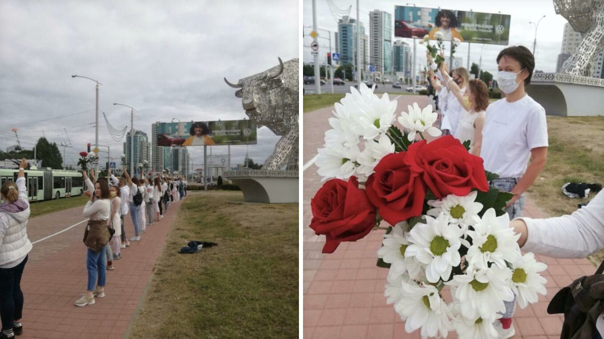 Сегодня цепи солидарности собираются в городе с самого утра. Известно про Кунцевщину, Малиновку, Академию наук, Петровщину в Минске и на ЦУМе в Бресте. На одной из улиц Минска на короткие период перекрывали дорогу.