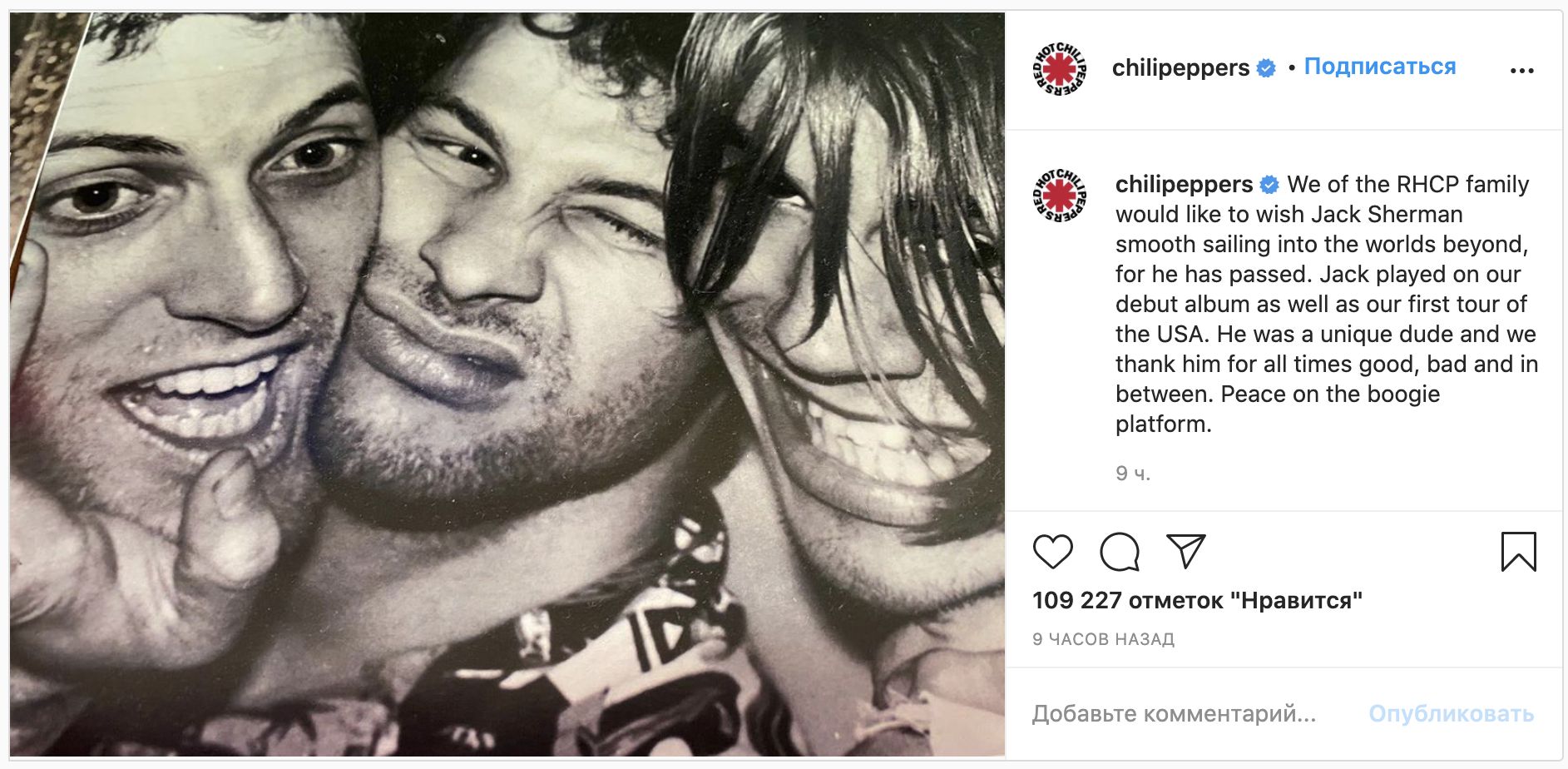 Скончался бывший гитарист группы Red Hot Chili Peppers Джек Шерман.