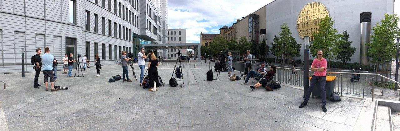 Накануне еще задолго до того, как машина скорой помощи с Навальным подъехала к Charite, полиция попросила журналистов покинуть территорию клиники, всех сотрудников СМИ вывели за шлагбаум.