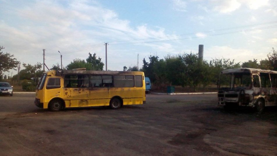 Об этом Суспильному сообщил представитель ГСЧС в Черкасской области Виталий Шульга. До приезда спасателей охраннику автопарка удалось один автобус отогнать.