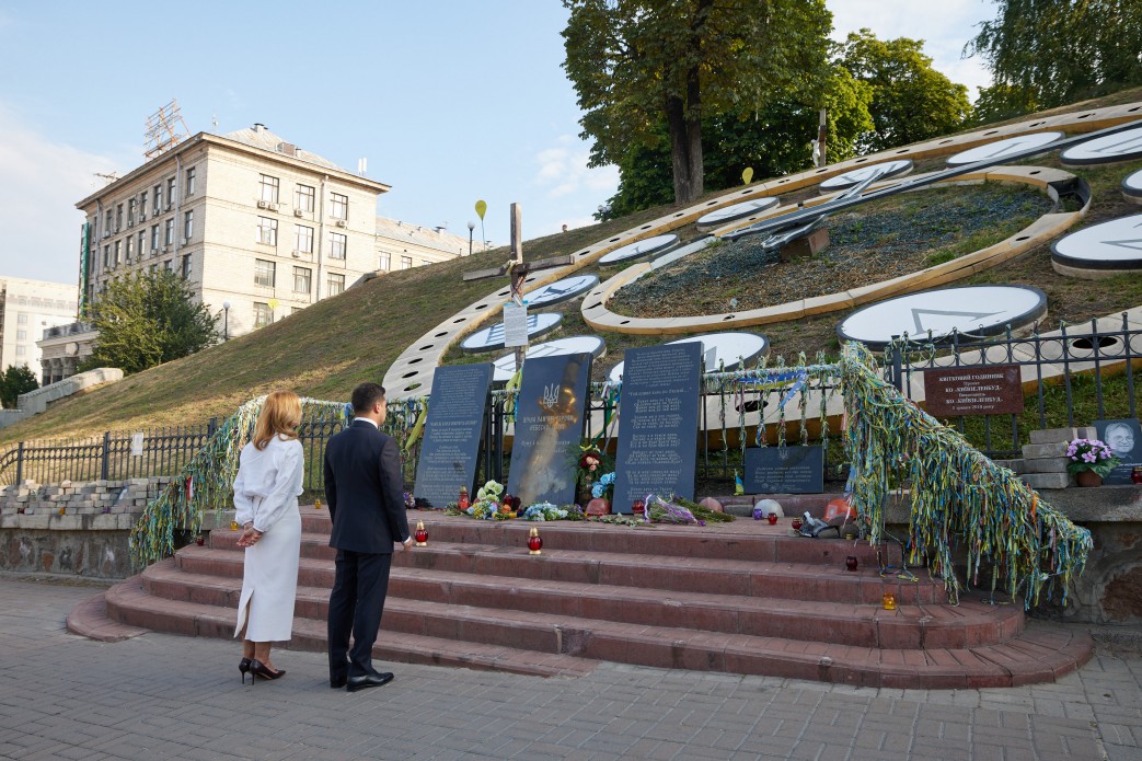 В День Независимости Украины Президент Владимир Зеленский и его супруга Елена почтили память Героев Небесной Сотни.