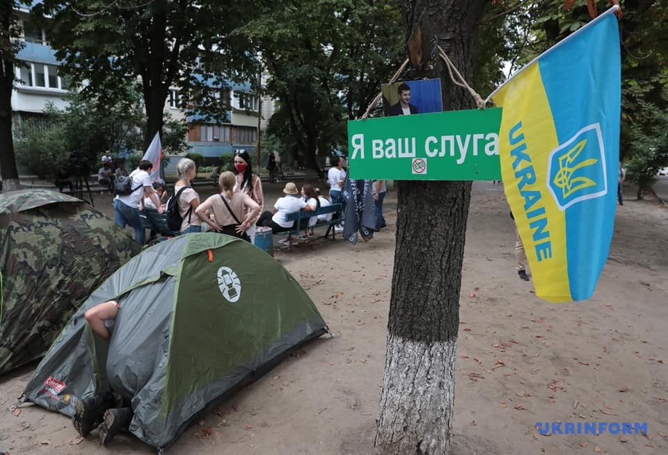 Как передает Укринформ, участники акции намерены остаться на ночь, уже установлены две палатки.