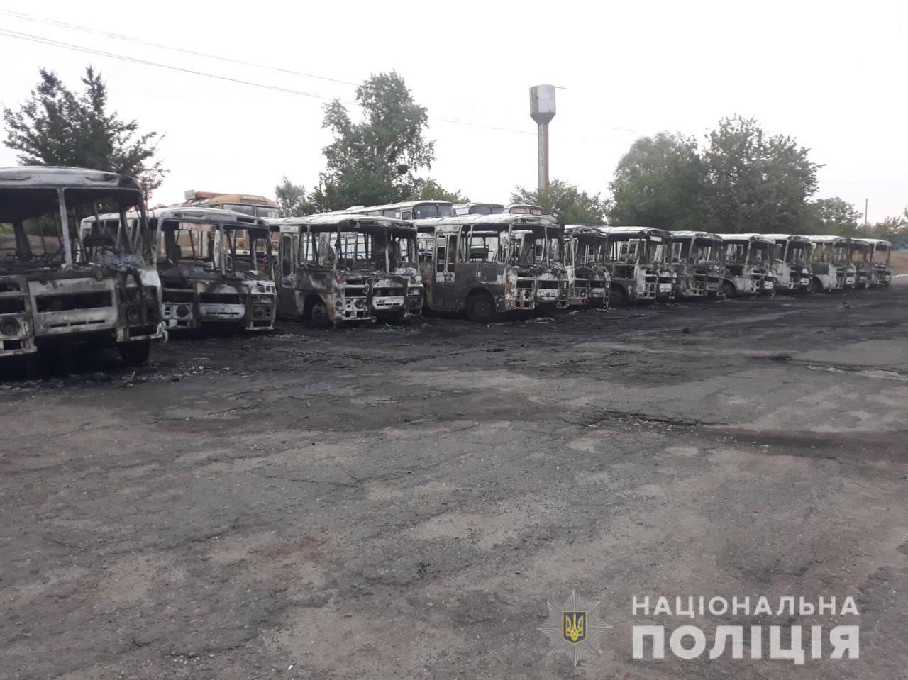 В Черкасской области, городе Золотоноша, в ночь на 24 августа на территории автопарка сгорело 12 автобусов. Как сообщает полиция области, возгорание автобусов заметил охранник, который вызвал спасателей и полицейских. Полиция рассматривает несколько версий пожара, одна из которых — поджог.