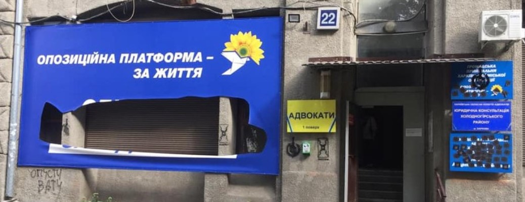 Неизвестные повредили баннер и адресные таблички офиса городской организации политической партии "Оппозиционная платформа - За жизнь" в Харькове.