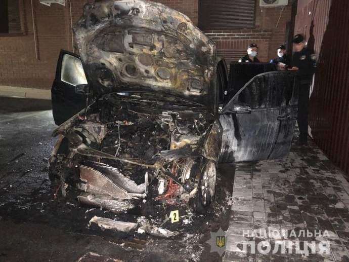 Полиция Киева устанавливает причины возгорания автомобиля народного депутата Гео Лерос.