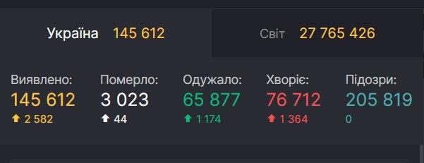 Всего в Украине по состоянию на 10 сентября выявлено 145 612 больных коронавирусной болезнью.