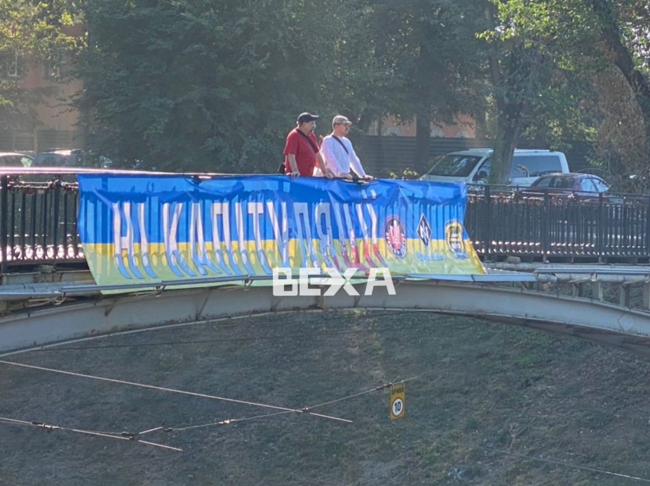 На двух мостах в Харькове - на Клочковском спуске и на проспекте Льва Ландау - появились баннеры "Ні капітуляції".