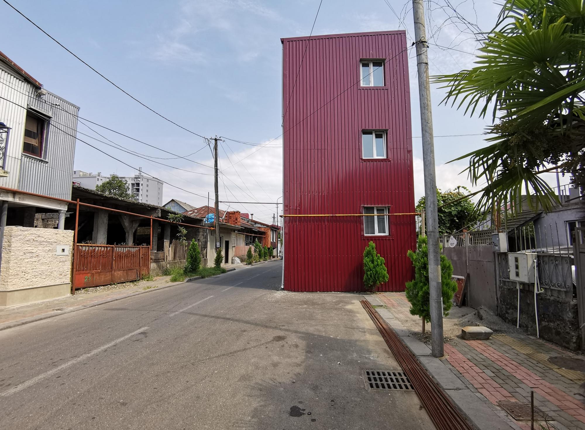 На странный дом обратил внимание один из пользователей Facebook. Он опубликовал снимок сооружения, на котором видно, что оно занимает весь тротуар и больше трети проходящей рядом дороги. «Марухская улица. Новый дом, еще идет ремонт. Наши дни», — написал автор фото.
