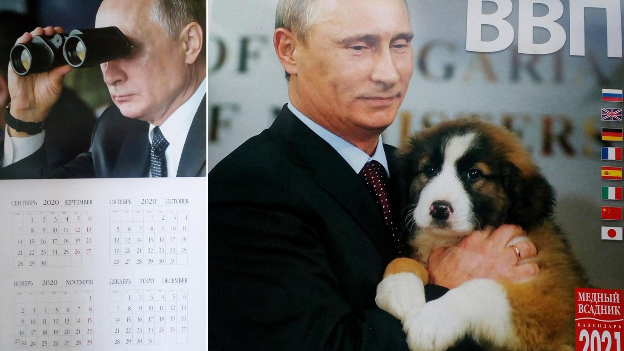 "Президент Путин производит впечатление изолированного человека на фотографиях для своего календаря на 2021 год, и среди его немногочисленных компаньонов - болгарская овчарка и прокремлевский байкер", - пишет The Times.