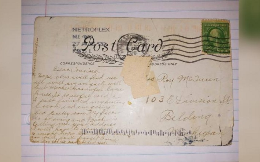 Жительница Мичигана Бриттани Кич сильно удивилась, когда нашла в почтовом ящике открытку, которая была отправлена почти 100 лет назад.