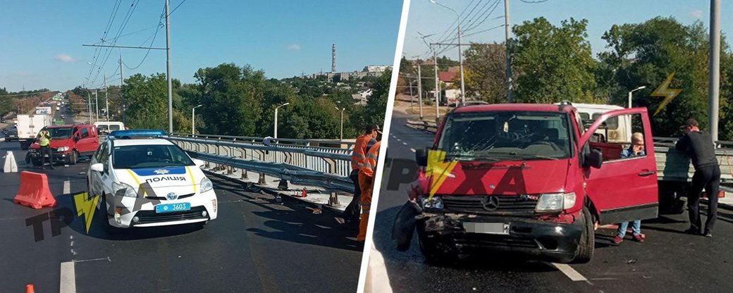 На мосту по проспекту Льва Ландау в Харькове микроавтобус наехал на рабочих.