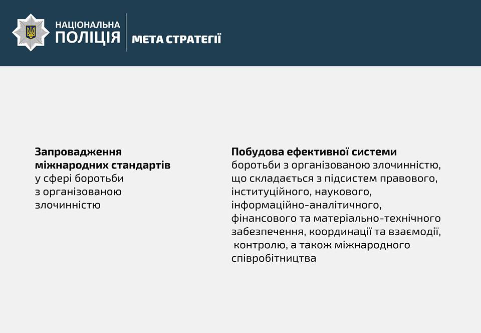 Стратегия сформирует эффективную систему противодействия организованной преступности. Ее разработкой занимались украинские специалисты и международные партнеры, ориентируясь на лучшие международные практики и стандарты.