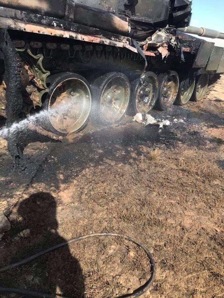 В Астраханской области во время военных учений подбили танк Т-90A. По нему выстрелил другой танк. Снимки инцидента публикуются в соцсетях.