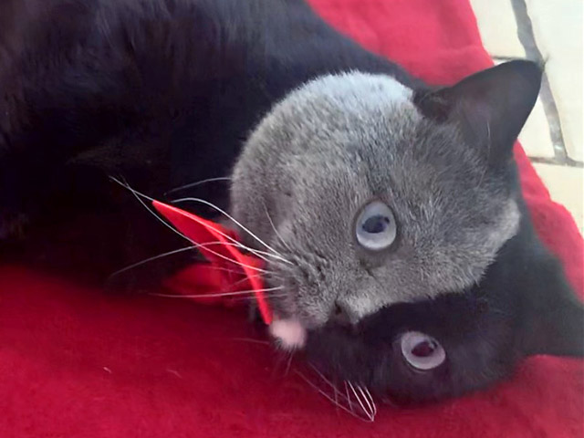 Этот кот с необычным и крайне редким окрасом родился в марте 2017 года, в питомнике заводчицы Стефани Хименес и довольно скоро "прославился" благодаря социальным сетях. Предки его – преимущественно короткошерстные британцы, мать голубого окраса, отец – рыже-тигрового.