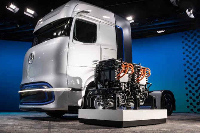 Концерн Daimler-Benz AG показал прототип электрического магистрального тягача Mercedes-Benz GenH2, оснащённого водородными топливными ячейками.